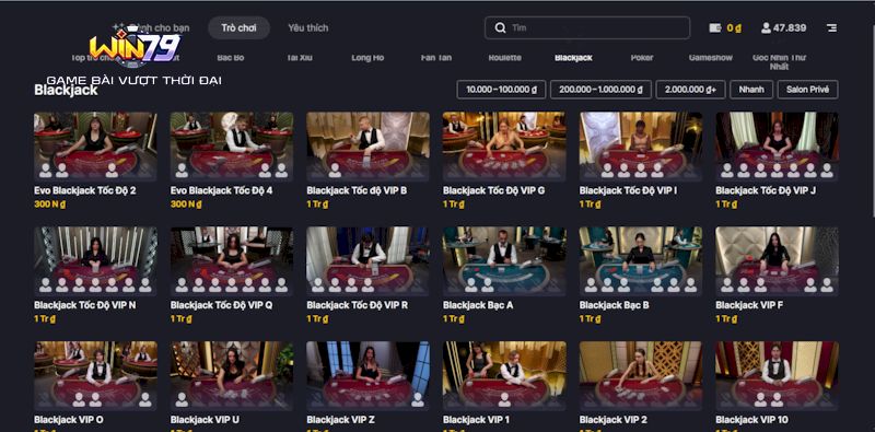 Blackjack còn được biết đến với tên gọi “21”, xuất phát từ châu Âu và đã tồn tại hàng thế kỷ. Khi về Việt Nam, trò này đã được việt hóa là Xì dách. Luật chơi cơ bản là các tay cược phải đạt điểm số càng gần 21 càng tốt mà không được vượt quá. Những bet thủ trên bàn sẽ so điểm với bài của nhà cái.Blackjack còn phổ biến rộng rãi trên các nền tảng trực tuyến. Trên cổng Win79, tựa game này còn được áp dụng với nhiều biến thể khác nhau, tạo nên sự mới mẻ cho mọi người khi đến tham gia trải nghiệm.Giới thiệu luật chơi và cách tính điểm có trong game Blackjack Win79